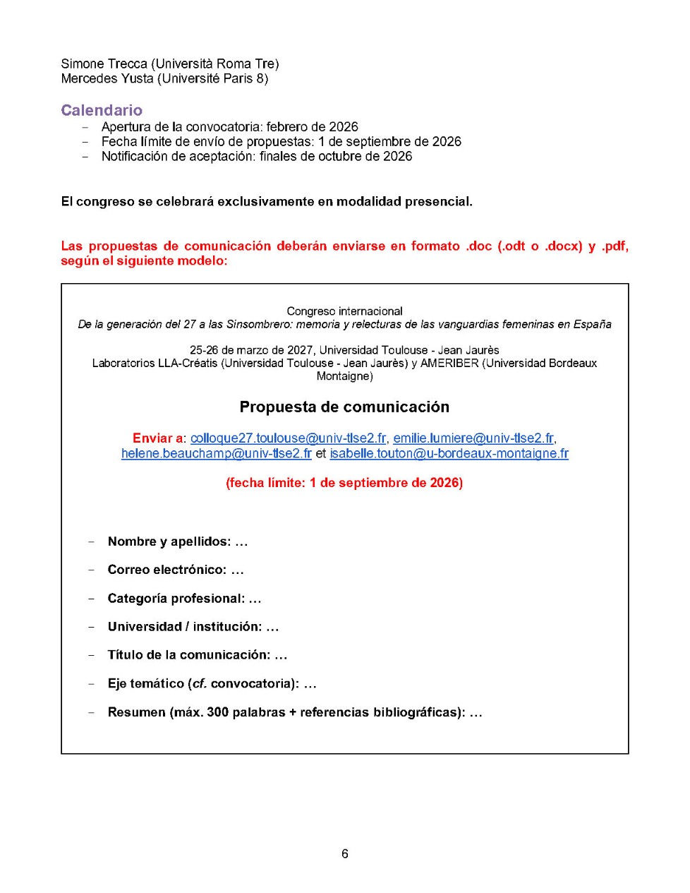 Appel à communication(s)/Convocatoria