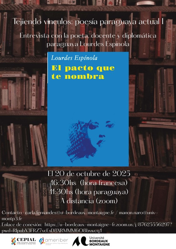 Séminaire CEPIAL - 20 octobre 2025 - 16h30 Zoom - « Tejiendo vínculos : poesía paraguaya actual I » (invitée Lourdes Espínola )